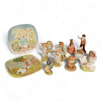 Lot 1292 , A collection of Beswick and Royal Albert Beatrix Potter figures to include Little Black Rabbit and The Head Gardener, together with two plates, 19cm wide