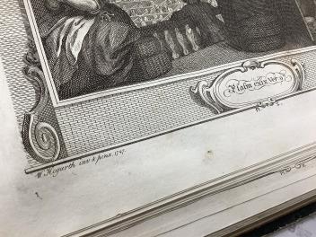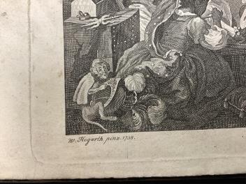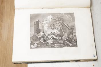 Lot 1691 , An album of 18th century and later etchings after William Hogarth (1697-1764), to include 'The Reward of Cruelty', 'Strolling Actresses Dressing in a Barn' and 'The Company of Undertakers', with handwritten ink itinerary
