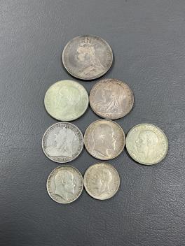 Lot 2025 , British coins, 18th-20th century, highlights include Victoria, crown, 1889, halfcrown, 1895, penny, 1867, Edward VII, florin, 1902, and one shilling, 1906, George V halfcrown, florin and shilling, 1928, George VI halfcro
