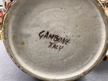 Lot 1335 , Guido Gamobone (Italian 1909-1969), a large multi coloured striped glazed earthenware vase signed,38cm high