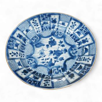 Lot 1287 , A Chinese kraak style blue and white dish, Kangxi period, 28cm diameter