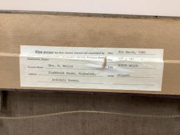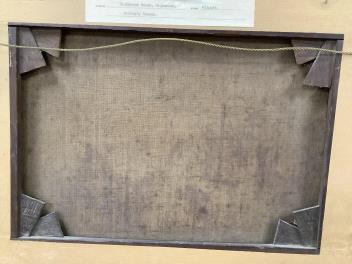 Canvas probably cleaned at some stage but not re-lined; good condition. Frame with some rubs/flakes, not serious.