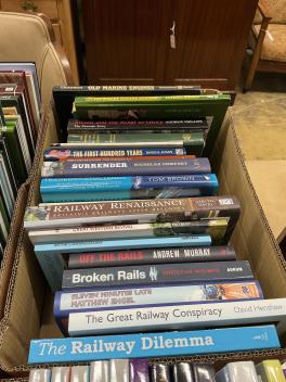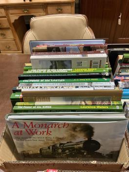 Lot 402 , Three boxes of railway related books, subjects include; Castles & Kings at Work, Great Western Kings, Great Western Steam Rail Motors, Old Marine Engines, Steaming Through Britain, CSX Power, etc., publishers include; Ia