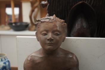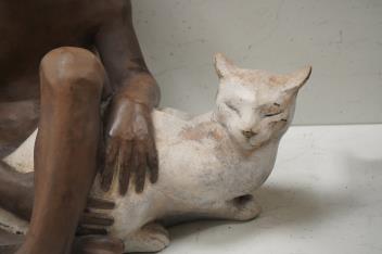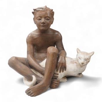 Lot 1404 , A contemporary composition figure of a seated boy and a cat, 46cm