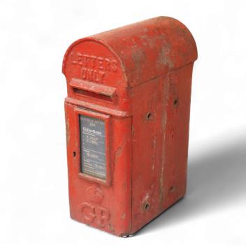 Lot 1413 , A George V red painted iron domed topped wall/post mounting post box, height 50.cm high x 19cm wide