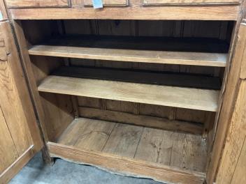 An early 19th century French pitch pine side cabinet, width 109cm, depth 48cm, height 115cm