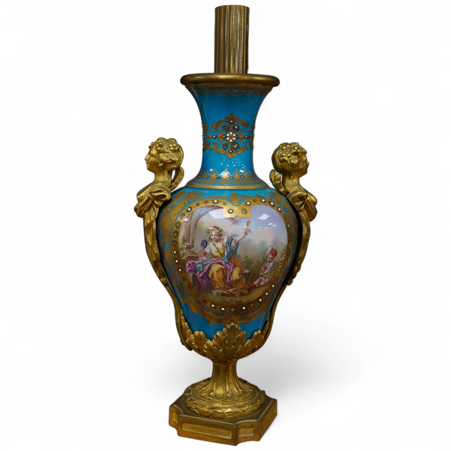 A 19th century ormolu mounted Sevres style vase mounted as a table lamp, 32cm
