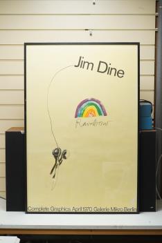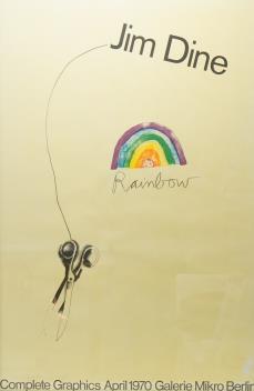 Lot 1737 , Jim Dine (American, b.1935), a signed framed poster, ‘Rainbow’, produced for the complete graphics exhibition at Galerie Mikro Berlin, April 1970, signed by Dine in pencil above the title across the bottom of the poster,
