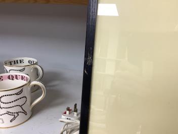 Curious loss of yellow at bottom-right corner, image 5; otherwise good. Frame with occasional rubs/scratches, image 6.