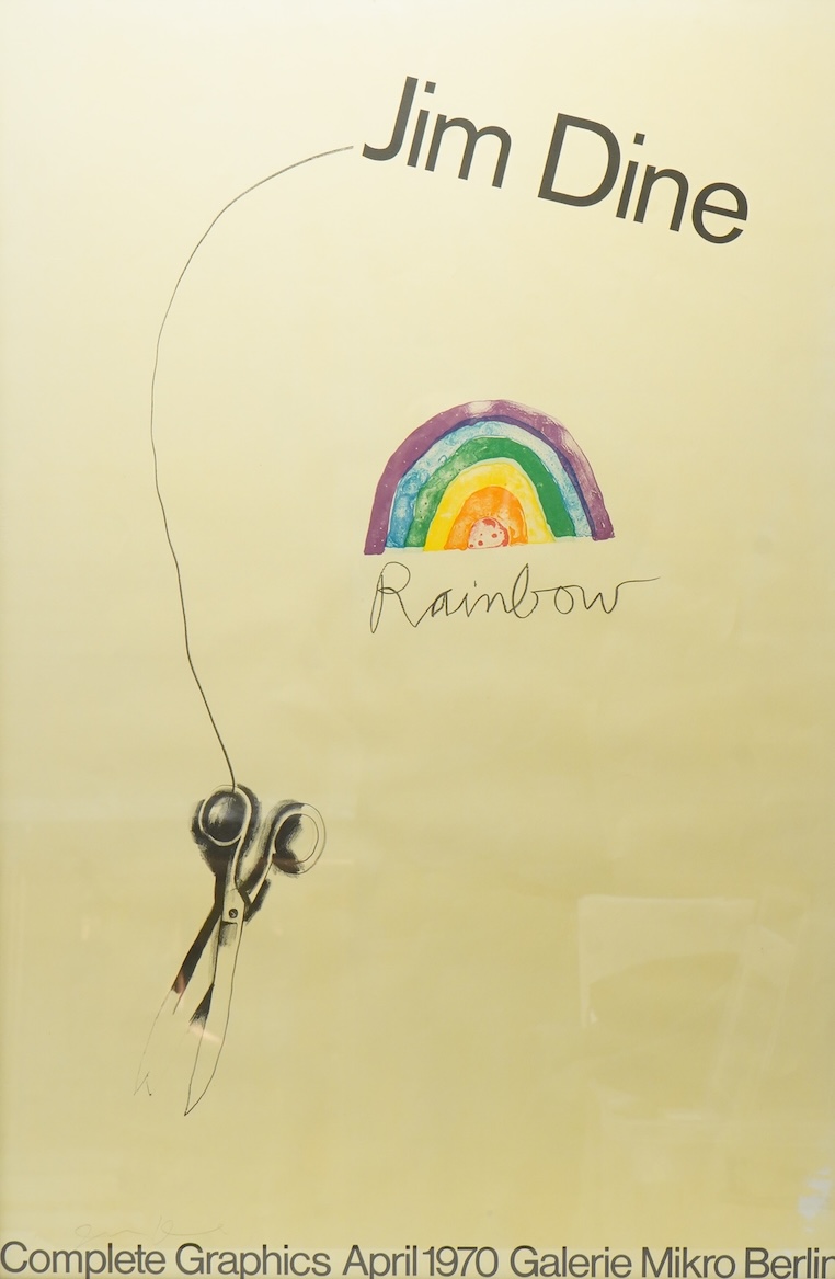 Jim Dine (American, b.1935), a signed framed poster, ‘Rainbow’, produced for the complete graphics exhibition at Galerie Mikro Berlin, April 1970, signed by Dine in pencil above the title across the bottom of the poster, 100 x 66cm