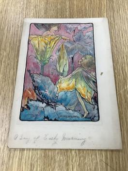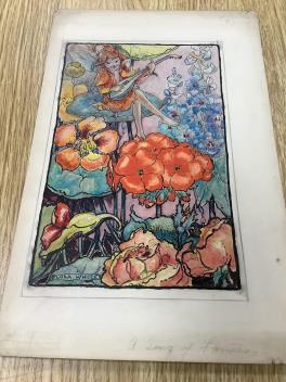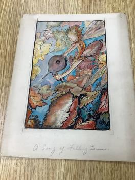 Lot 738 , Flora White (Early 20th. C), Set of six original watercolours for childrens' postcard designs, Fairy Songs to include ‘Songs of falling leaves’ and ‘Song of early morning’, each inscribed in pencil, largest 27 x 19cm