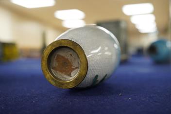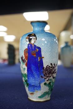 Lot 476 , A small Japanese cloisonné enamelled vase, 12cm high
