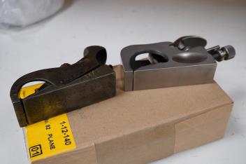 Lot 1033 , Three small planes; a boxed modern Stanley No.92 (1-12-140) ‘Sweetheart’ shoulder plane, together with two bull nose rabbet planes; a modern Clifton 770, and another older example, possibly by Stanley