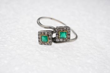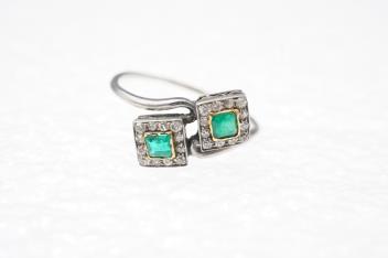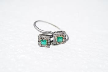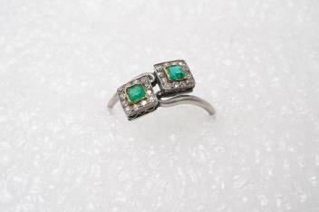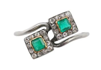 Lot 567 , An attractive Art Deco emerald and diamond 'toi et moi' ring, 1920s