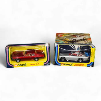 Lot 312 , Two boxed 1970s Corgi Toys; a James Bond Aston Martin (261) in silver with passenger, together with a Jaguar XJS (319) in metallic red