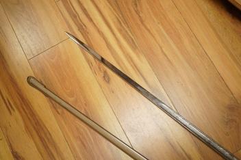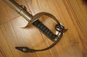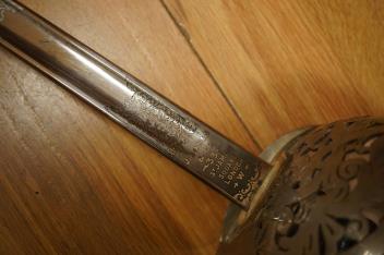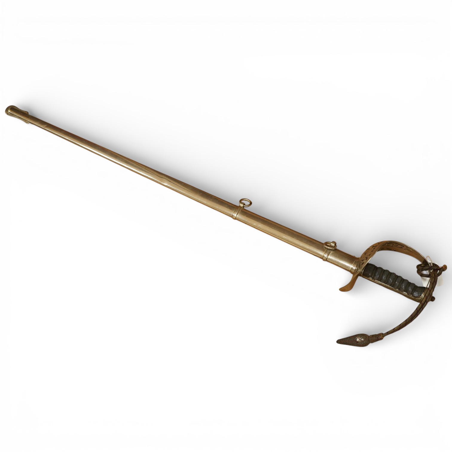 Lot 7 , A George V 1898 pattern infantry officer’s sword of the Royal Marines, with clean etched blade, regulation hilt and metal scabbard with bullion dress knot