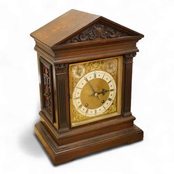 A mahogany 19th century German two train mantel clock, striking on two coiled gongs, 41cm high.