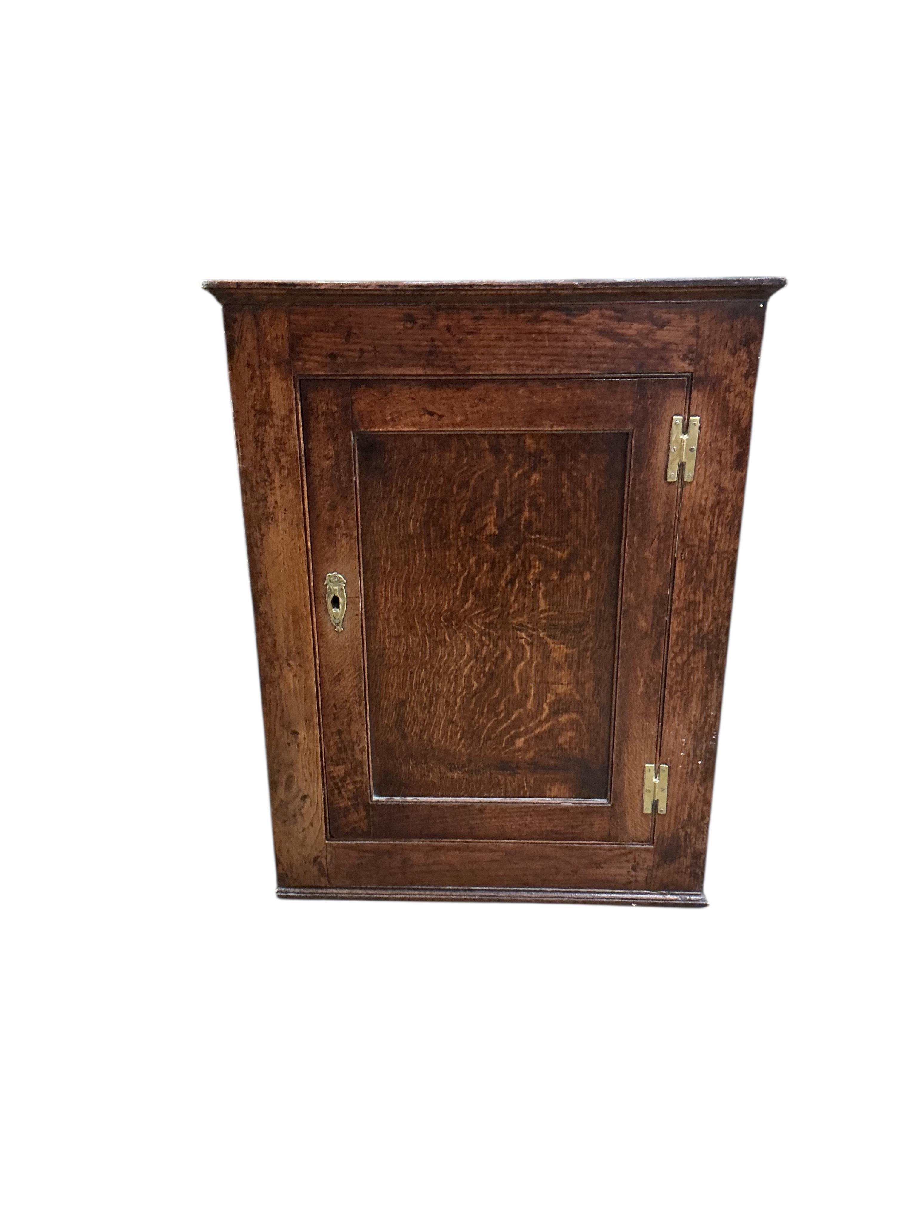 Lot 92 , A George III oak hanging corner cabinet, width 63cm, depth 33cm, height 85cm