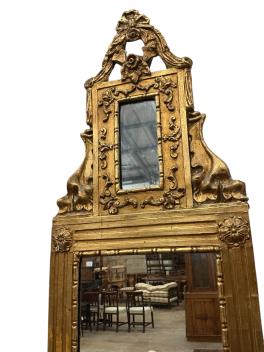 Lot 21 , A small carved giltwood and composition wall mirror, width 33cm, height 110cm