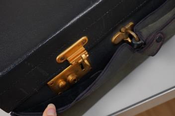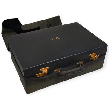 Lot 1351 , A blue morocco suitcase, moire silk lined, stamped Walker & Hall, outer cover 51cm wide x 36cm deep