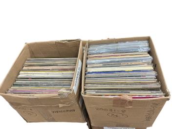 Lot 1268 , Two boxes of jazz LP record albums, artists including; Maynard Ferguson, Herbie Mann, Charlie Parker, Ben Webster, Earl Hines, duke Ellington, Ray Charles, Modern Jazz Quartet, Ella Fitzgerald, etc.
