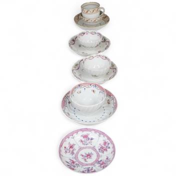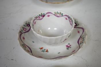 Lot 1302 , Nine pieces of 18th century New Hall, tea bowls and saucers etc