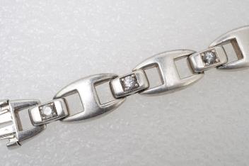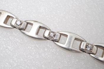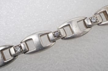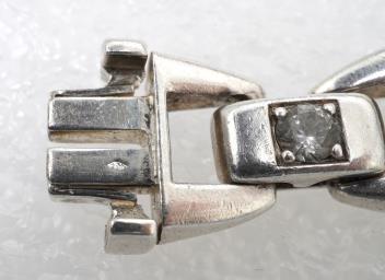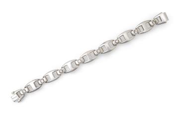 Hermès, a silver and rock crystal bracelet, designed as a strap composed of flat anchor-style linking, connected by links set with circular-cut rock crystal, to a concealed clasp, length 22cm, signed Hermès, French assay mark and maker's mark, gross weight approximately 94 grams