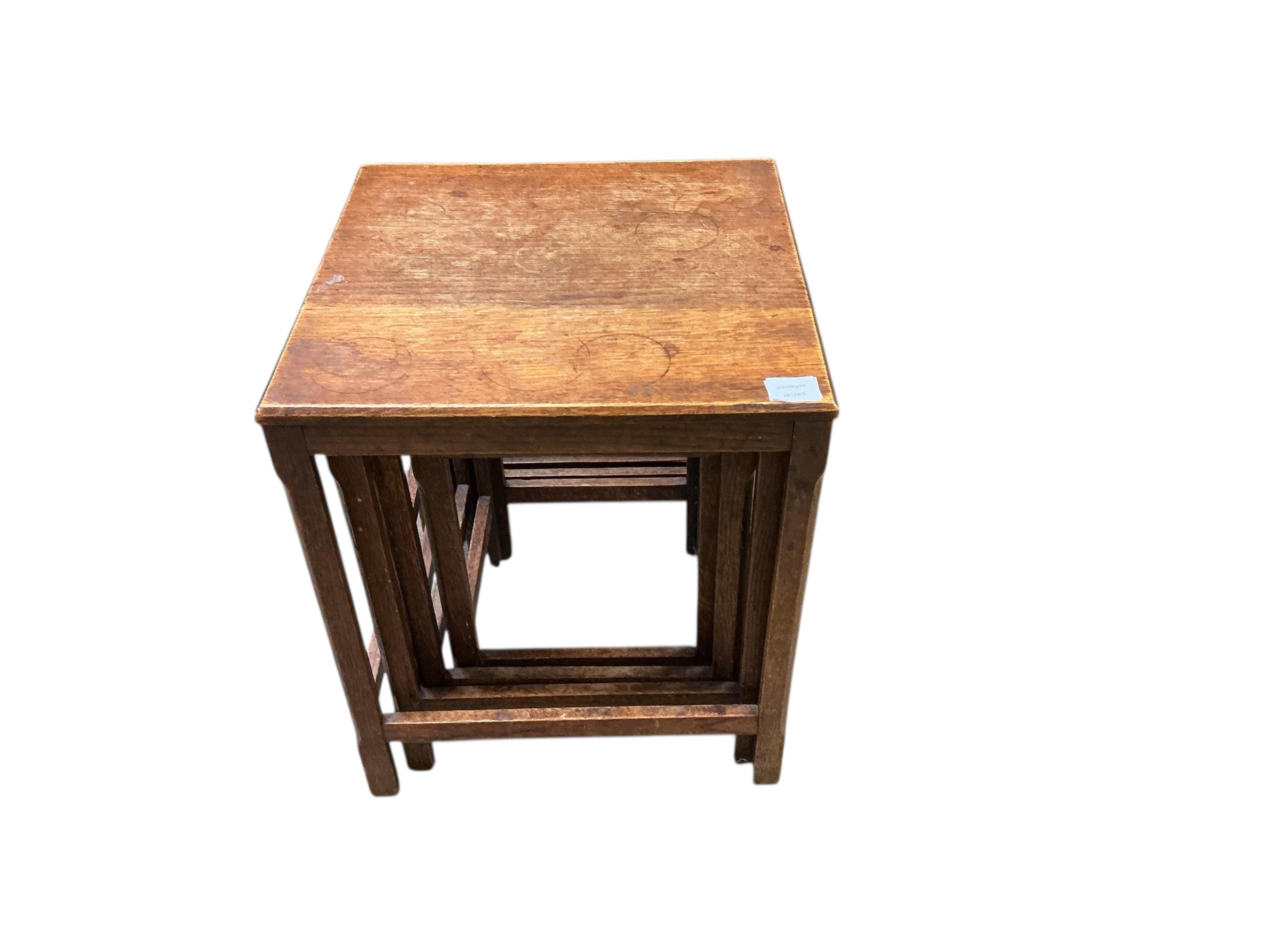 Lot 1101 , A quartetto of Arts & Crafts style oak tea tables, width 44cm, depth 45cm, height 54cm