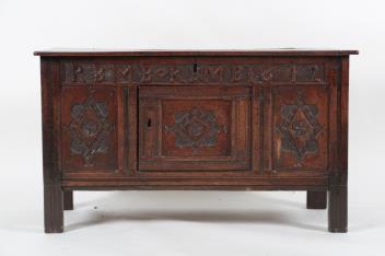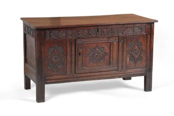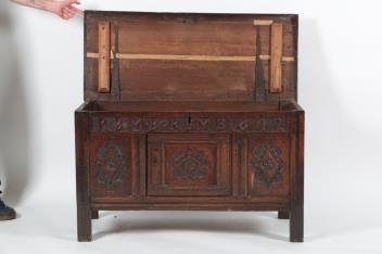 Lot 212 , A Charles II oak coffer, dated 1672