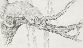 Lot 1720 , George Vernon Stokes (1873-1954), ‘Cougar’, monogrammed, pen ink, 12.5 x 20cm