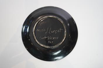 Lot 106 , Jean Lurçat (1892-1966): An ochre and black glazed earthenware plate, decorated with a stylised central figure