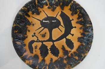 Jean Lurçat (1892-1966): An ochre and black glazed earthenware plate, decorated with a stylised central figure