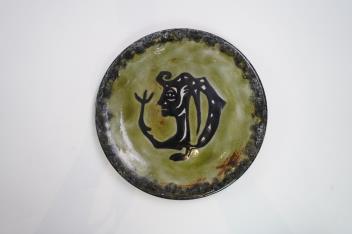 Lot 109 , Jean Lurçat (1892-1966): A green glazed earthenware plate, decorated with a stylised central figure