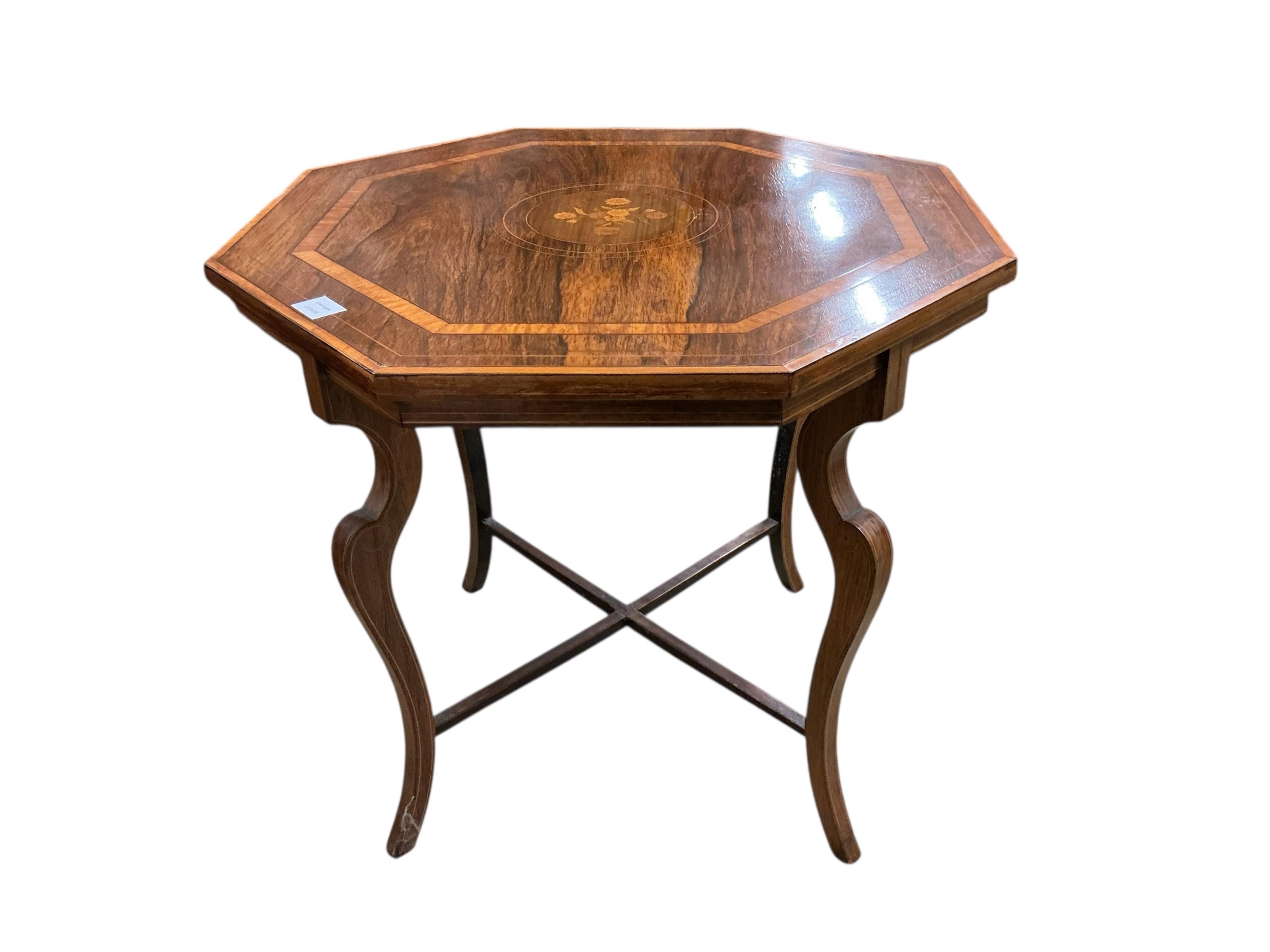 Lot 52 , An Edwardian marquetry inlaid satinwood banded octagonal rosewood centre table, width 76cm, height 69cm