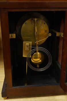 Lot 372 , An early 20th century mahogany mantel clock, the dial inscribed Hyde & Sons, Sleaford, 41cm high