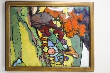 Lot 496 , Léon Jouhaud (1874-1950), 'Retour au Logis', signed lower left, an enamel on copper plaque, 9.5 x 7cm