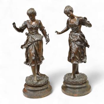 Lot 1444 , A pair of late 19th century French spelter figurines, 50cm high
