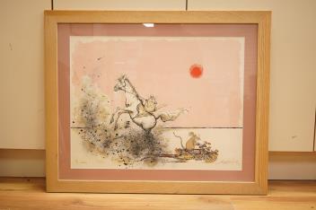 Lot 786 , Late 19th century English School, Sheep grazing on a hillside, unsigned, mixed media and charcoal, 44 x 64cm
