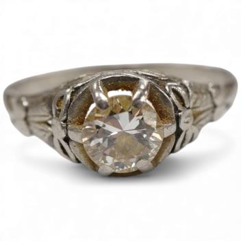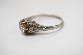 Lot 932 , A white metal and claw set solitaire diamond ring, the stone weighing approx. 0.25ct, size N.