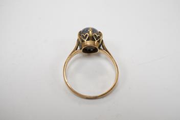 Lot 933 , A yellow metal and single stone claw set star sapphire ring, size P, the stone approx. 9mm in diameter.