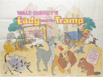 Lot 1375 , A vintage Lady and the Tramp film poster, copyright MCMLV, printed in England by W. E. Berry, unframed, 76 x 100cm