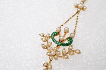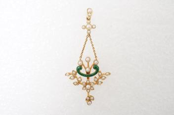 Lot 307 , An Edwardian seed pearl and enamel pendant, early 20th century