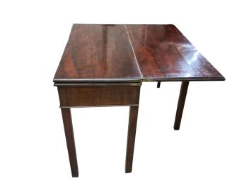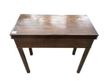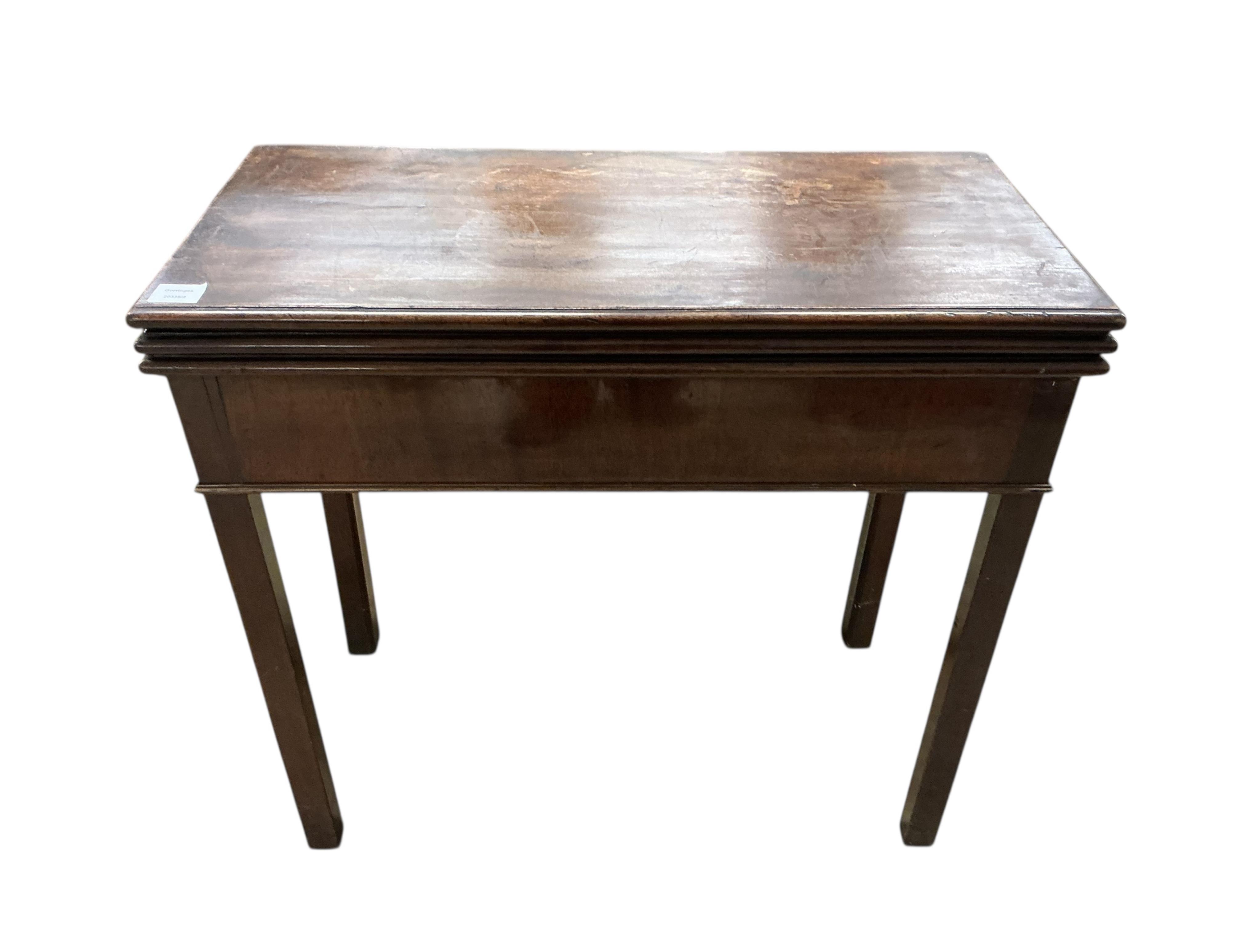 Lot 1058 , A George III rectangular mahogany triple top folding card and tea table, width 82cm, depth 38cm, height 75cm