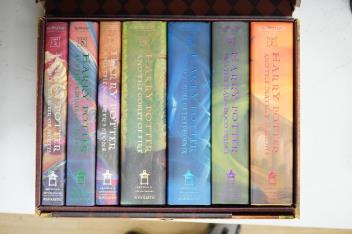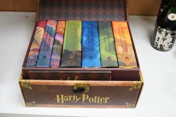 Lot 1453 , Books: Harry Potter cased set of seven books. American first editions., Half Blood Prince 2005 - first printing, Deathly Hallows 2007 - first printing