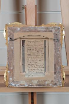 one housed in an ornate giltwood frame with ink annotations verso,