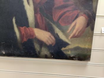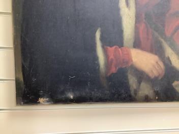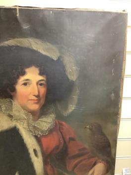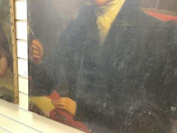 Unrestored but canvases dirty with old rubs, craquelure and surface scratches throughout; both with marks around perimeters caused by former frames; female canvas pulling away from stretcher. Indistinctly inscribed verso, may be Mrs Pearson/Mr Pearson.