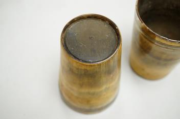 A near pair of 19th century white metal mounted horn beakers, unmarked, height 10.2cm et infra.