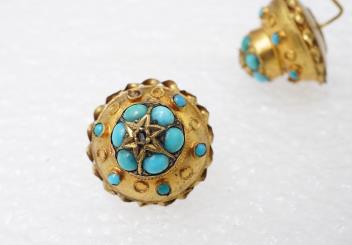 A pair of turquoise earrings, late 19th century and later