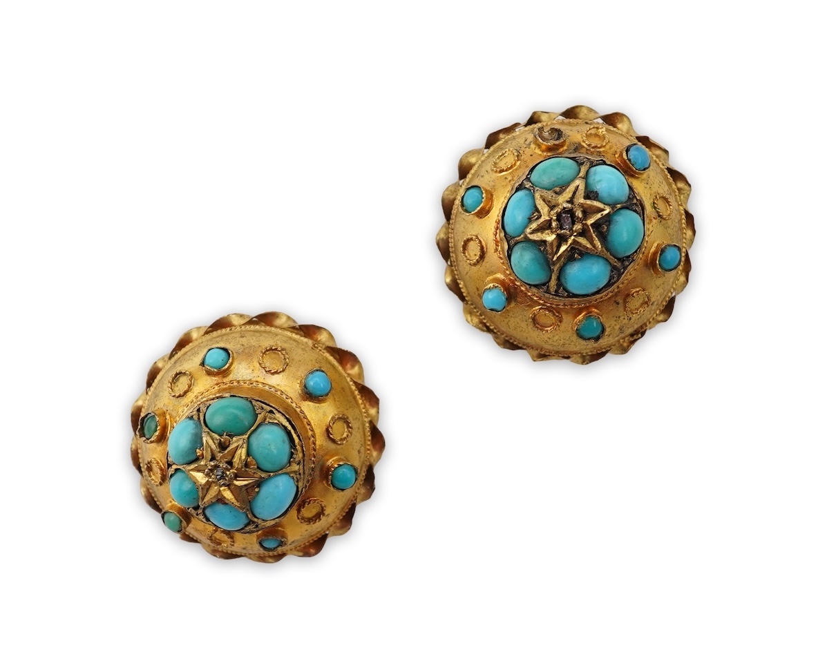 Lot 140 , A pair of turquoise earrings, late 19th century and later