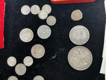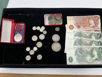 Lot 2023 , British and world coins and bank notes, Victoria to Elizabeth II, highlights include Victoria, silver crown, 1889, half crown 1887, three shillings, 1896, 1898 and 1900, various threepences, 19th/20th century pennies, ha